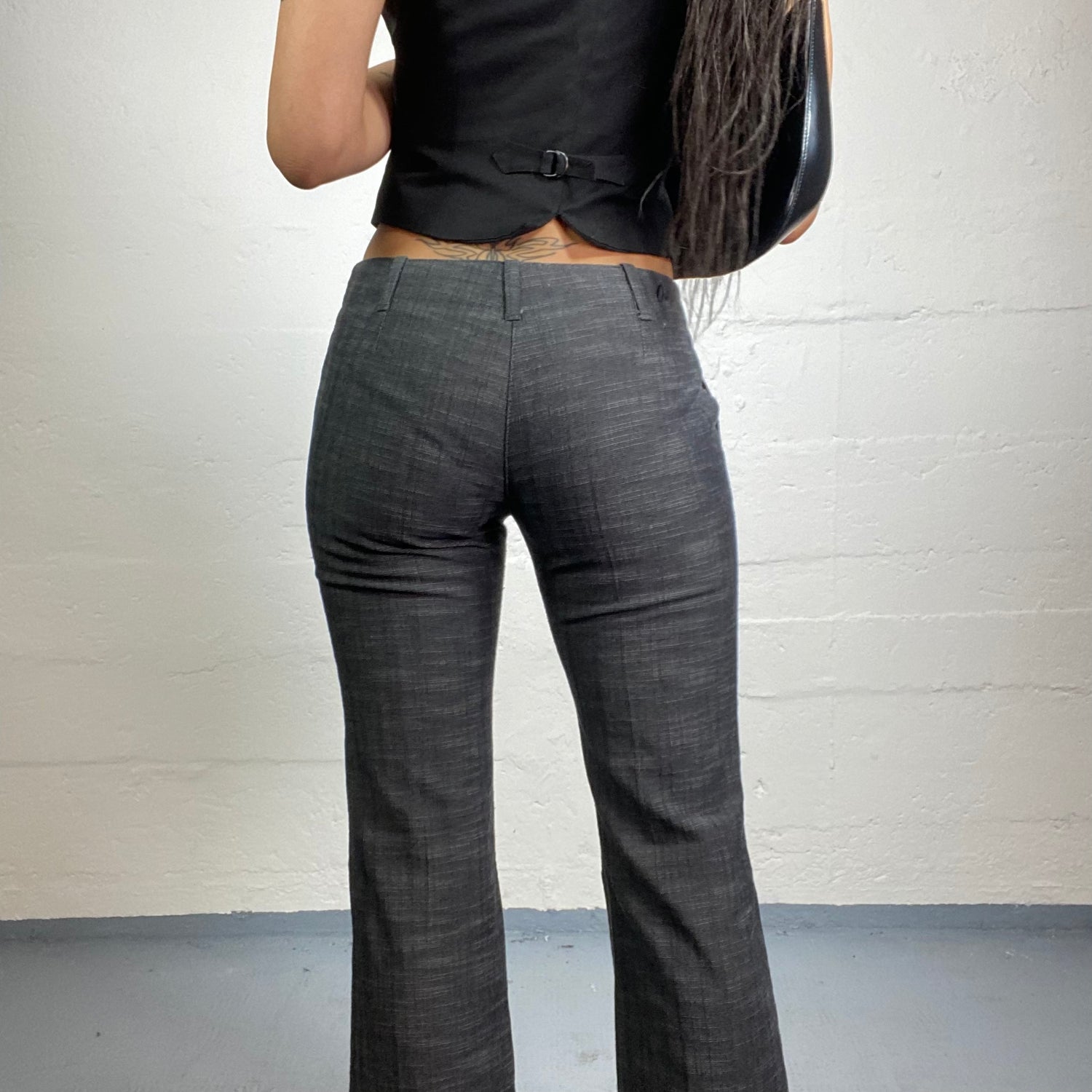 Vintage 2000's Corpcore Girl Stone Grey Pants with Flare Cut (XS)