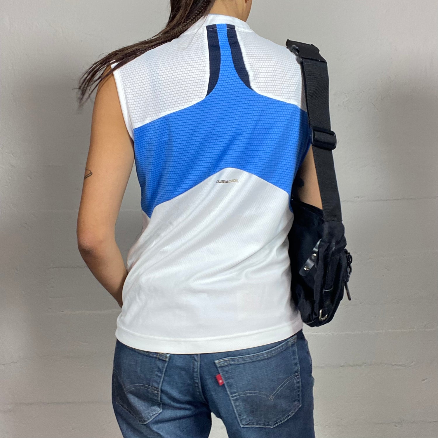 Vintage 2000's Adidas Sport White Top with Blue Back Part (S)