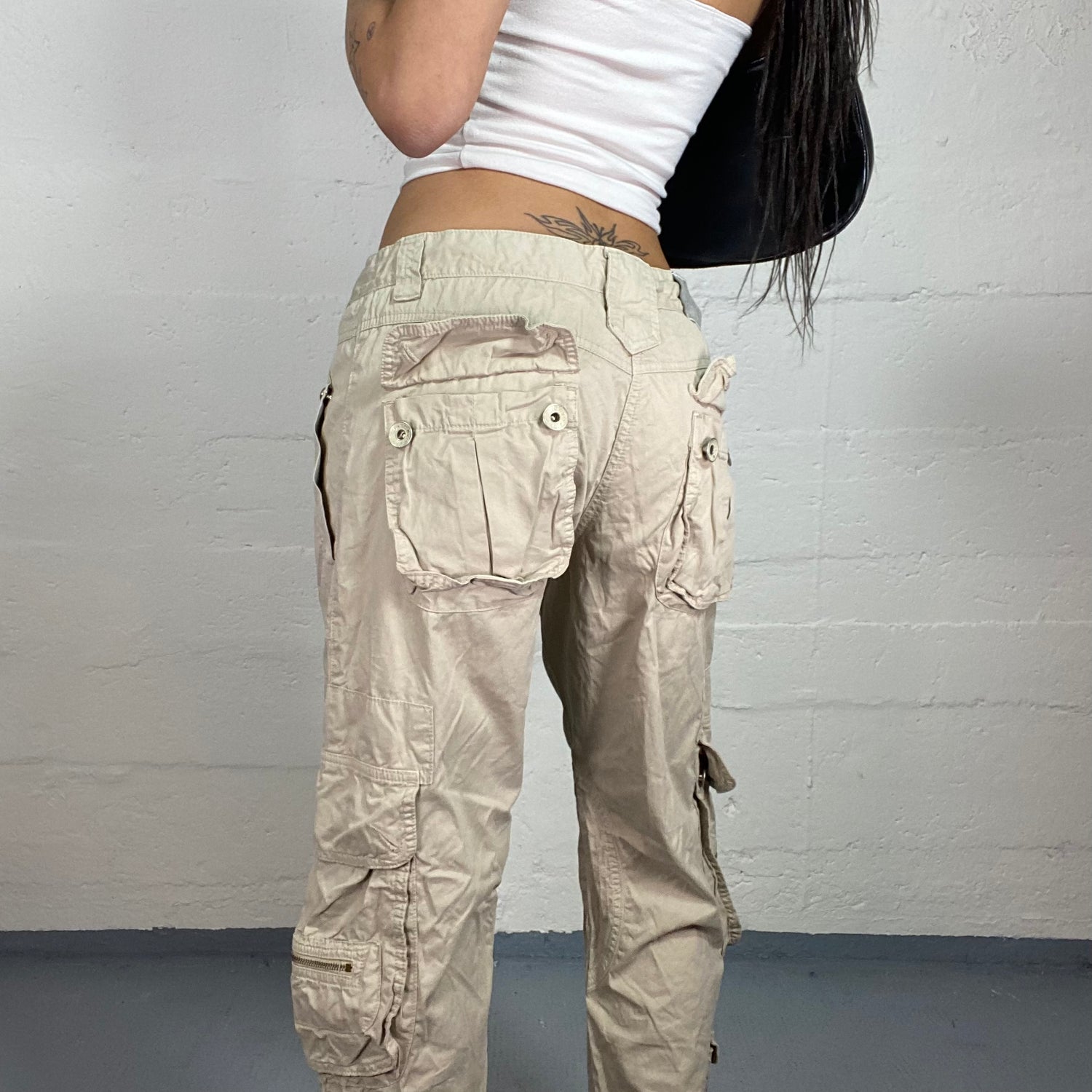 Vintage 2000's Cyber Beige Low Waist Cargo Pants with Big Pockets Detail (S)