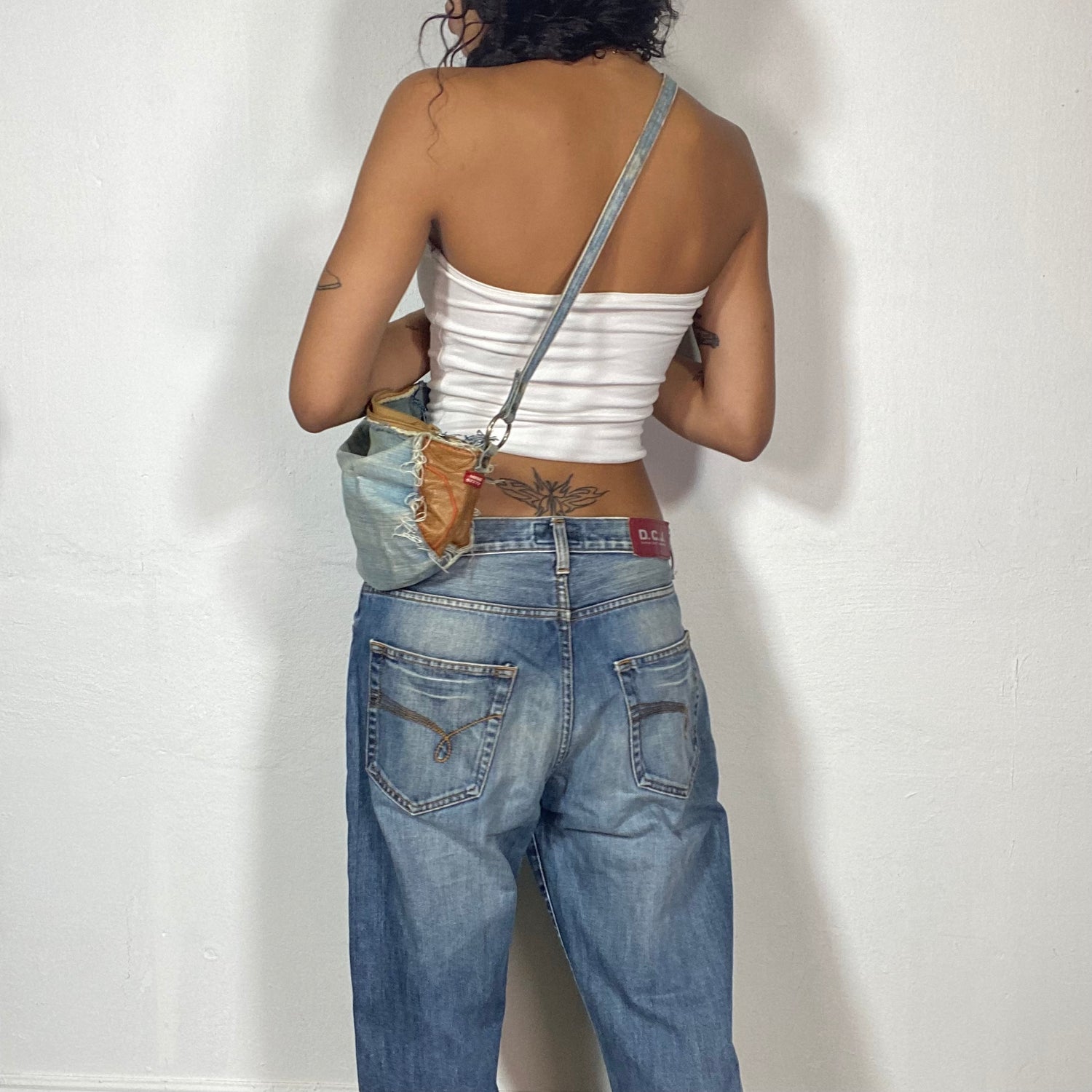 Vintage 2000's Sleaze Jeans Shoulder Bag with Deconstructed Finish