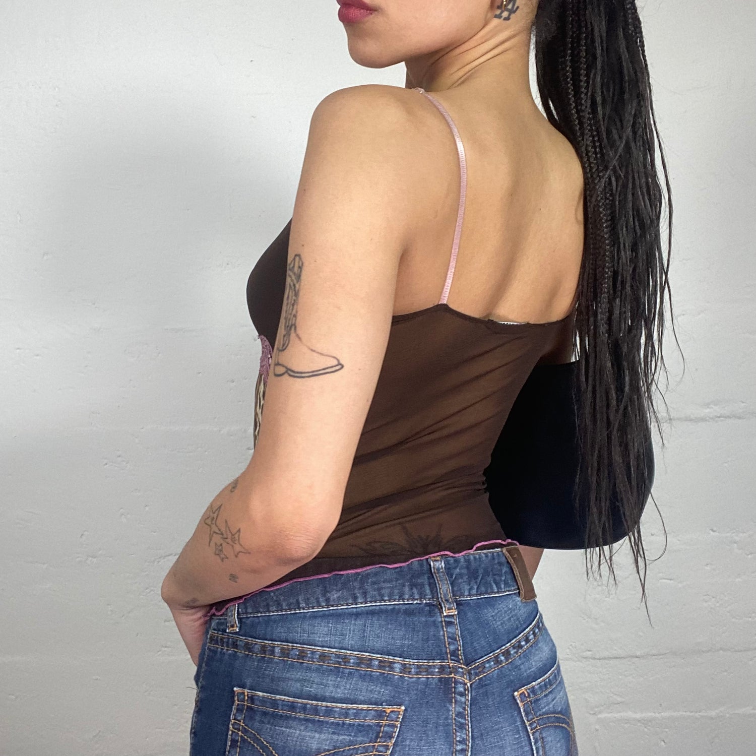Vintage 2000s Morgan Romantic Night Out Multicoloured Animal Print Cami Top with Pink Lace Details (S)