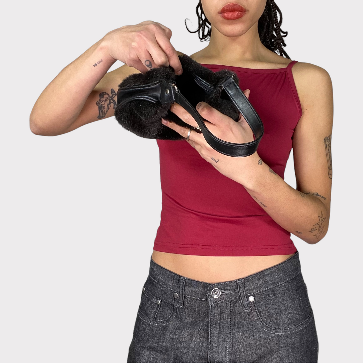 Vintage 2000's Black Faux Fur Small Shoulder Bag