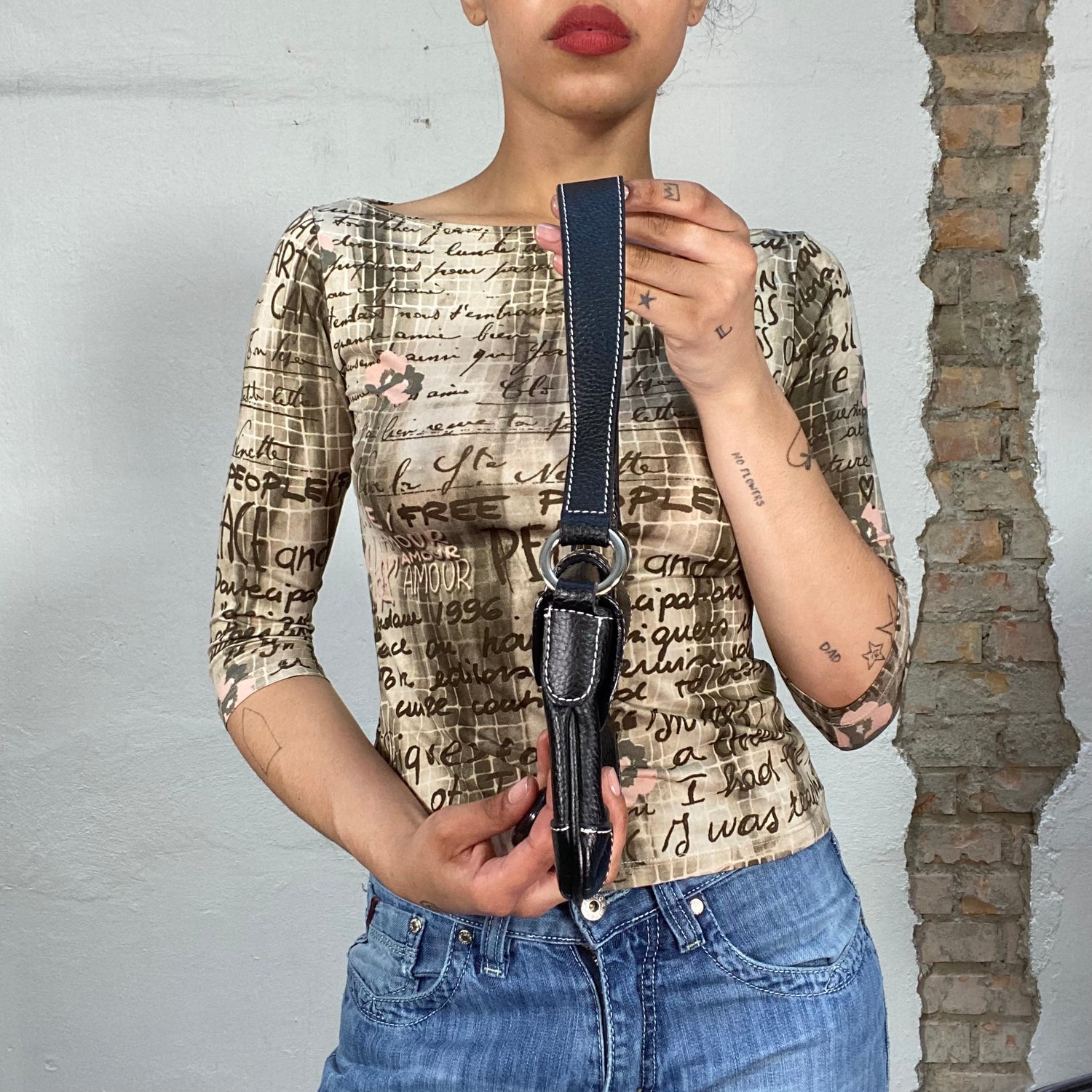 Vintage 2000's Downtown Girl Black Mini Shoulder Bag with White Stitching (S)