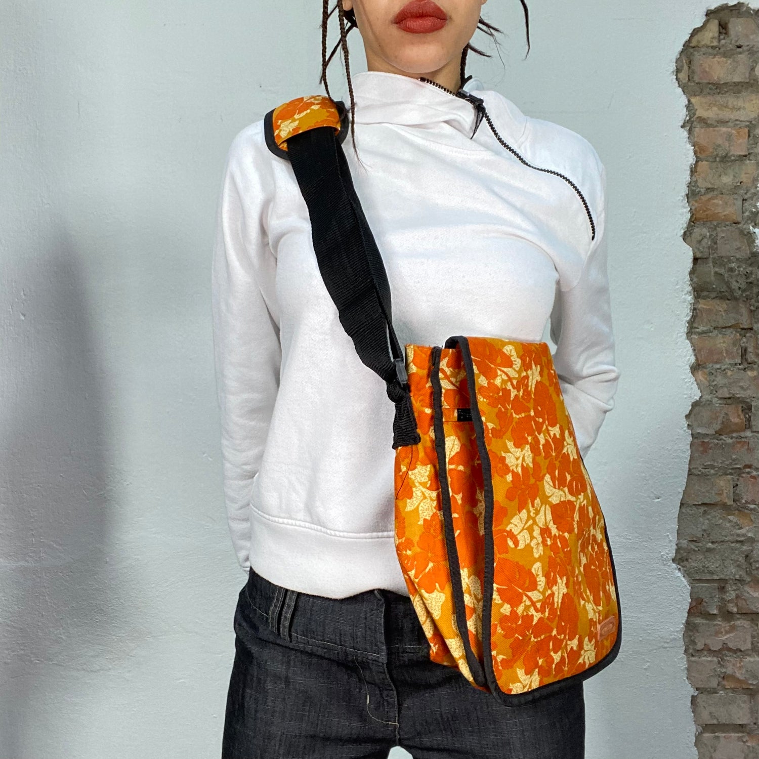 Vintage 2000's Surfer Orange Crossbody Messenger Bag with Hibiscus Print