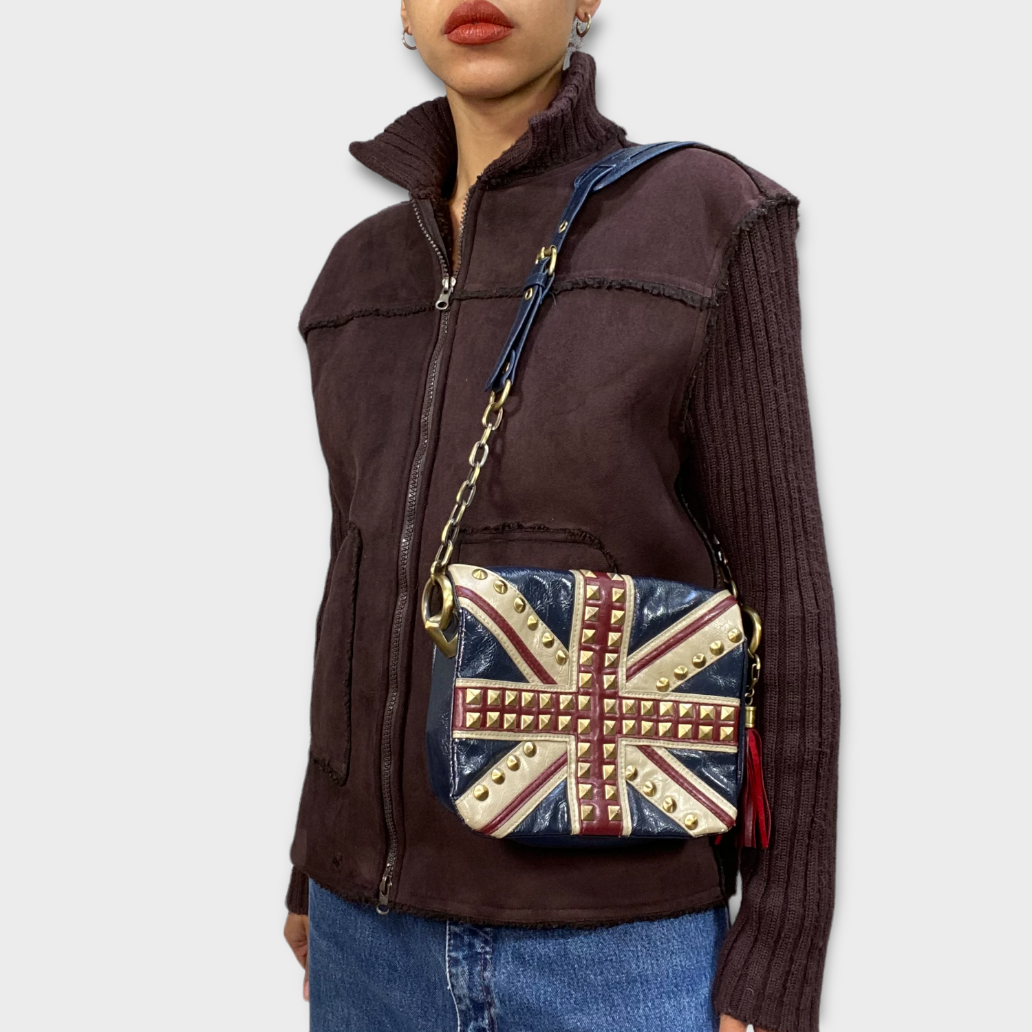Vintage 2000's Rock Navy UK Flag Leather Bag with Golden Studs